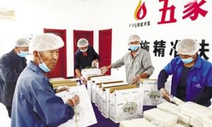 五家子村村民于山(左二)和乡亲们在扶贫车间包装旱稻。 从去年年底开始,基层干部潘徽明显感觉到休息的时间变多了一点,他所在的兴安盟扎赉特旗曾是大兴安岭南麓集中连片特困地区旗县之一,2...