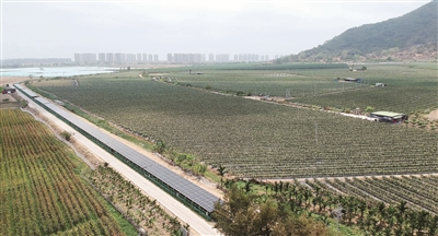 近日,海南省首个分布式“渠面”光伏项目并网发电。该项目创新采用光伏发电与水渠资源利用相结合方式,即将光伏板铺设于干渠及周边空余未利用土地上方,既不影响渠道功能,又可光伏发电,总装机容量达59.9兆瓦,预计年均发电量约1.02亿千瓦时。图为陵水黎族自治县分布式光伏发电项目。