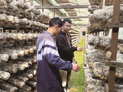 温州银行金融服务团队走访丽水市景宁县菌菇种植户。