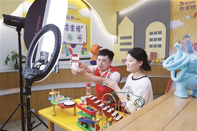 永嘉农商银行“金融讲师”协助韩埠村教玩具电商开展直播活动。