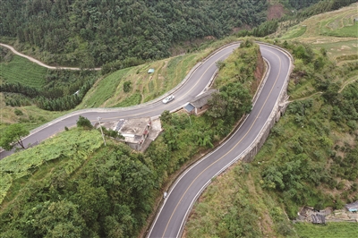 广西龙胜各族自治县龙脊梯田风景名胜区大循环公路,串联龙胜各族自治县多个乡镇的旅游村寨和景点,全长66.55公里,有效解决了当地旅游交通拥堵问题,并通过一系列开发,沿线形成了观光、体验和休闲的多元化旅游产品,推动当地全域旅游发展,助力乡村振兴。 图为广西龙胜各族自治县龙脊梯田风景名胜区大循环公路。