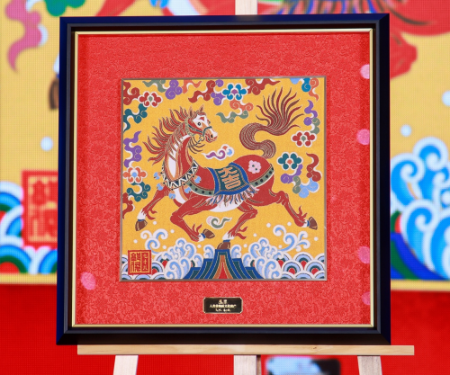云锦大师们不仅是传统技艺的守护者,更是文化创新的推动者。现场,云锦泰斗、云锦设计第一人、国家级传承人郭俊与省级传承人杨玉柱携新作《祥麟天下》《马上大吉》揭幕,以传统纹样融合现代审美,展现“寸锦寸金”的匠心独运。