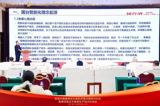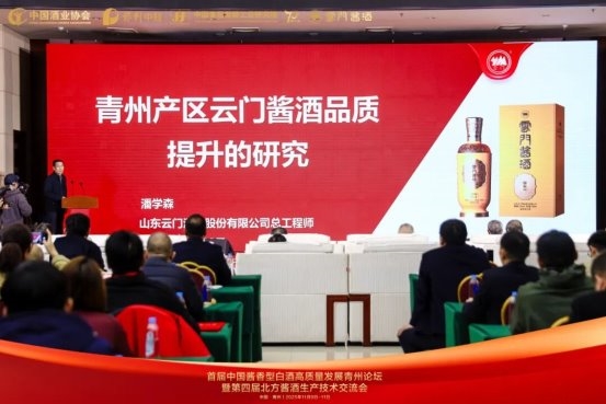 云门酒业股份公司总经理潘学森以“青州产区云门酱酒品质提升的研究”为题进行专题汇报。报告从原料优选、工艺创新、品质管控等多个维度,展示了企业在品质提升方面的最新科研成果。