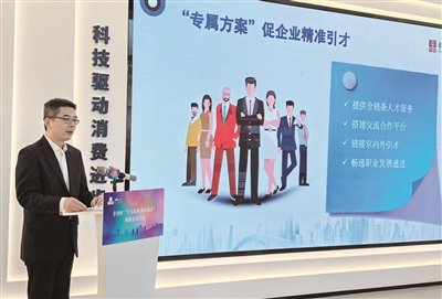 近日,北京市丰台区“丰宜乐业 助企惠才”创新发布会在诺德中心值得买科技集团数字展厅举行。发布会上,相关负责人介绍了丰台区通过2025“丰台·学子回家”活动发布6.4万个实习、见习、就业岗位,累计发放创业担保贷款突破20亿元。 图为丰台区人力社保局相关负责人在介绍“丰宜乐业 助企惠才”实施情况。