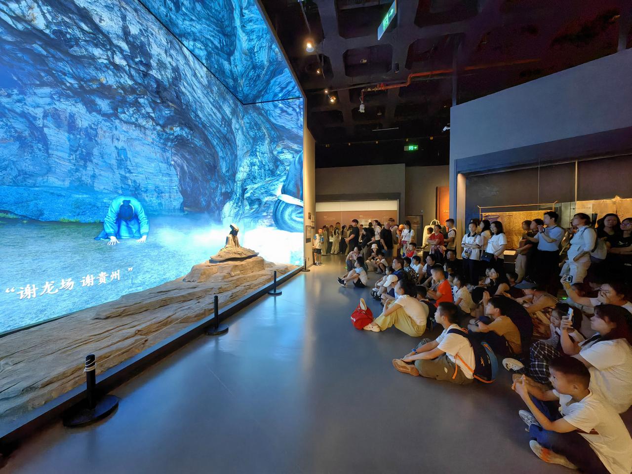 观众在“人文山水 时光峰峦:多彩贵州历史文化展”上观看王阳明龙场悟道视频。 贵州省博物馆供图