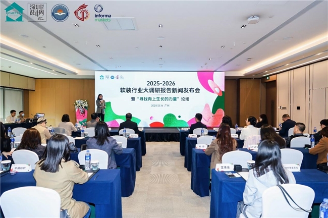 2025年12月16日,《2025-2026软装行业大调研报告》新闻发布会暨“寻找向上生长的力量”主题论坛于广州越秀国际会议中心正式举行。本次活动由深圳国际家纺布艺暨家居装饰展览会与家居中国(深圳)创意设计周联合主办,旨在系统梳理行业脉络,探寻向上生长的破局之道。广东省家纺家居行业协会会长、深圳市博奥展览有限公司董事长邓源津,总经理张青出席并致辞。《中国纺织》华南区主编、深圳家纺家居展顾问卢晓彦代表调研团队发布核心成果。现场汇聚了二十余位产业链企业领袖、资深设计师及数十家行业媒体,共同围绕行业变革、消费升级与未来路径展开深度探讨。