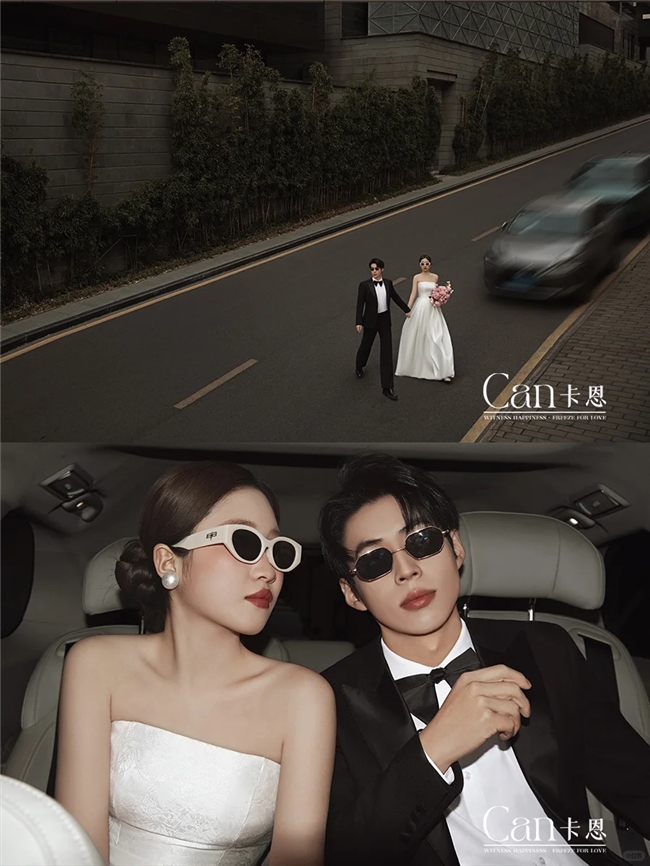 服装搭配上,苏荷精准匹配 “街头场景 + 潮流风格”,拒绝违和感。极简时尚风搭配简约缎面婚纱、利落西装、短款礼服,颜色以黑白灰、香槟色为主,突出线条感与材质质感;甜酷混搭风搭配皮质外套、鱼尾婚纱、潮流配饰(墨镜、腰带、马丁靴),打破传统婚纱的刻板印象;复古潮流风搭配改良旗袍、民国学生装、复古连衣裙,颜色以酒红、焦糖色、米白为主,呼应古城街头的复古氛围;文艺纪实风搭配棉麻材质礼服、碎花连衣裙、休闲西装,颜色清新自然,适配市井小巷的文艺气息。所有街拍礼服均注重舒适度与活动性,方便新人在街头自由互动,无束缚感。