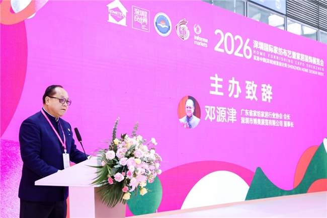 广东省家纺家居行业协会会长、深圳市博奥展览有限公司董事长 邓源津以全球25万余公里的考察见闻为引,直言中国家纺仍是“充满可能的新大陆”,而本次展会正是激活这片大陆的核心能量场。他强调,展会的价值不止于商贸成交,更应成为思想汇聚、趋势预见、全球资源链接的枢纽,并介绍了展会推出的全球渠道拓展、VIP星曜服务等创新举措,传递出对行业未来的坚定信心。