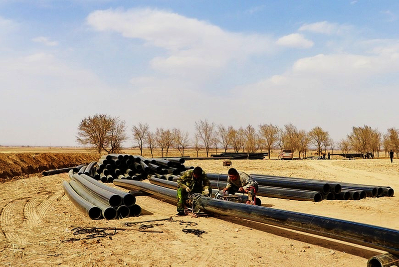 高标准农田灌溉管道铺设中。