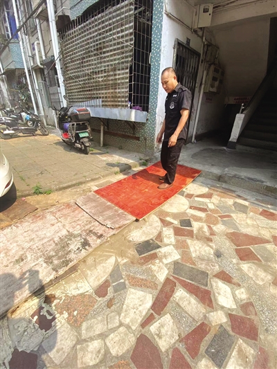 3月22日,记者来到该小区走访,业主符先生(化姓)介绍,有两处路面是去年被挖开的,改造施工了一段时间后就停工了,至今已经半年。“他们挖开路面后,建筑垃圾和碎石也不清理,随意丢在楼梯口附近。挖开处只是铺上木板,都被雨水泡烂了。我们只好让物业简单清理,但一些很厚很重的石板搬不动,只好就这么放着。”符先生说,小区有两栋楼的楼梯口前方路面被挖开,目前已停工半年,“小区里住着不少老年人,万一不慎踩到这些建筑垃圾和碎石,很容易摔倒,受了伤谁来负责?”