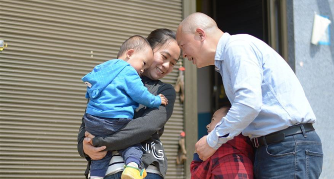 3月22日,在贵州省毕节市赫章县双坪乡贵州九鼎农业发展有限公司中药材种植基地,陈润华(右一)与家人在一起。