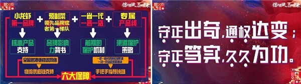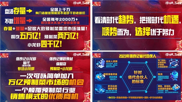 选择是不是有保障?选择信良记六大保障。第一、品牌支持和核心产品支持,四梁八柱,做信良记,小龙虾产品是第一大支持,省代一年做小龙虾一个省最多3000-4000万,少的也有2000多万。第二、预制菜第一品牌,我们致力于打造作为预制菜的第一品牌,现已跻身预制菜第一梯队,真正的预制菜在我看来第一必须要熟制,第二复合入味,第三简单加热还原,真正具备这三点才是真正意义上的预制菜,所以信良记小龙虾真正意义上具备这三点。信良记在16年就提出过预制菜的概念,应用到小龙虾产品上,把小龙虾产品形态作为预制菜产品形态的一个开创者和鼻祖。第三、前期对省代和体验店的前期保护机制,一省一代,一县一店,专属的产品线,渠道保护策略,全国冷链物流网络支持,整合了全国的冷链百强企业里几十家给我们做服务。同时一对一的代渠道拓展赋能,一对一开店和运营赋能,手把手帮扶,所以选择有没有保障,在这六大保障做支持的基础之上,我们要守正出奇,通权达变。守正笃实,久久为功,这就是选择信良记最大的保障。