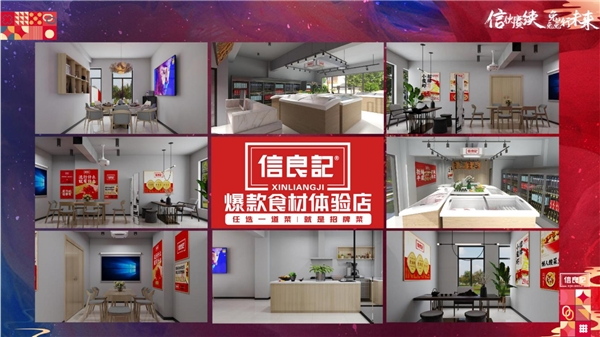 信良记爆款食材体验店的一些功能区和设计图,仅仅是一个月的时间现在全国已经落地近二十几家,发展速度非常快,模式大家非常认可,那爆款食材体验店除了县域的定位还怎么定位?第一相当于大城市里的蜀海,爆款食材体验店虽开在县域市场,但是tob业务相当于大城市里蜀海,蜀海是给海底捞做食材供应的。第二爆款食材体验店在县域里,我们的零售端相当于大城市里的盒马,盒马是店、仓结合的新零售模式,所以爆款食材体验店就是一个mini版的县域蜀海加盒马,全面覆盖整个县域的餐饮零售线上线下全渠道模式,这就是爆款食材体验店模式的创新性,打造一个具备创新性的综合体,这个模式契合县域市场的消费升级,实现我们县域的蜀海模式,实现县域餐饮的食材供应。