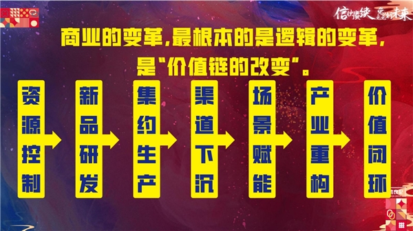 任何变革的背后最根本的就是逻辑的变革,也就是价值链的改变。我们可以发现,现在这个时代是一个旧的产业价值链的解构和新的产业价值链重构的过程,我们需要在这个过程中抓住机会,抓住机遇,信良记在上游资源不断强化新品能力的研发,我们集团有亚洲美食联合研发中心,集结了全国100多位烹饪大师的研发能力,通过我们工厂集约化生产渠道的下沉,餐饮场景、零售场景的赋能,最终实现产业的重构,价值的闭环,把更多的价值带给我们的合作伙伴,这就是信良记这个平台的价值,用更多的价值去传递给我们的合作伙伴,去赋能给我们的合作伙伴。